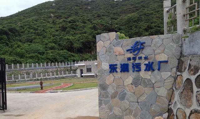 東澳污水廠位于大小竹灣,2015年12月完成環保驗收,并投產。主要收集處理東澳島南沙灣片區的居民和酒店的生活污水。設計總規模1000立方米/日,一期處理規模為500立方米/日,二期規模為500立方米/日,占地約2500㎡。處理工藝為生物接觸氧化工藝,為了保持美麗的海島環境,主要構筑物格柵井、調節池、水解酸化池、接觸氧化池、二沉池、消毒池、集水井、污泥池等均以地埋的形式建設。目前年日均污水處理量約200立方米/日。出水水質可達到國家一級A標準。